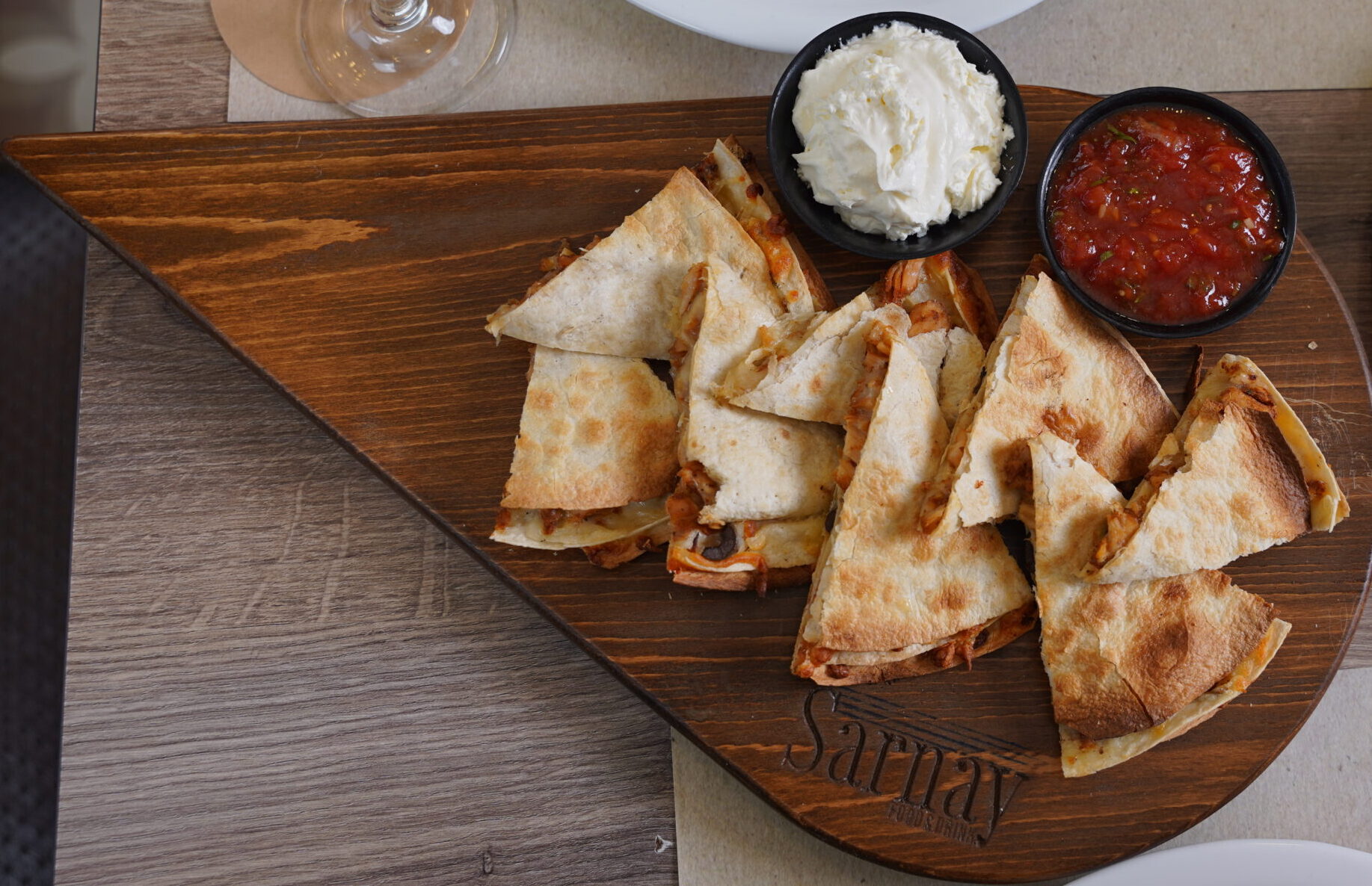 Chicken shawarma, tortilla bread filled with chicken, cheddar cheese, olive, garlic & chips on the top
